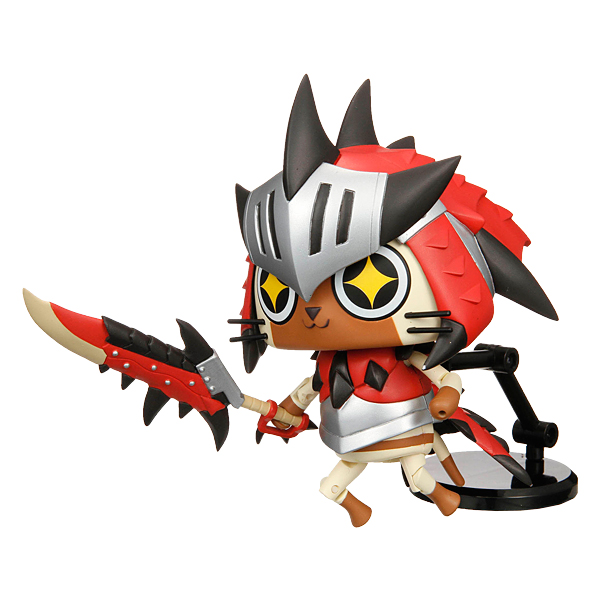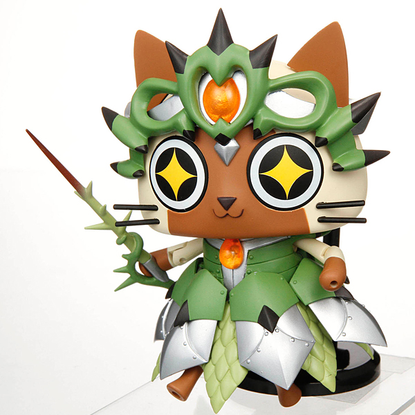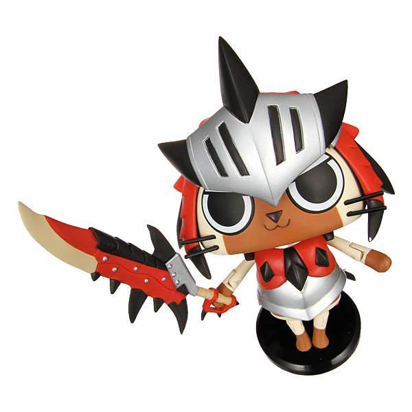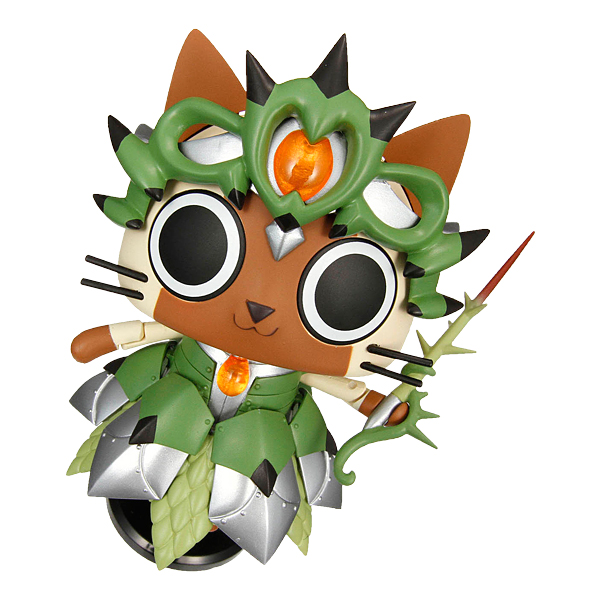 大人気『モンスターハンター』シリーズから、オトモアイルーたちのディフォルメタイプアクションフィギュア第2弾が登場ニャ。今回は『MHP3rd』からの追加要素となった新オトモ装備をまとった姿を再現。レウスネコシリーズと、レイアネコシリーズの2種類が発売されるニャ。もちろん装備と武器は着脱可能。瞳パーツの差し替えでアイルーの表情も変えられるから、ダンナさんの好きなように組み替えてみるといいニャ。